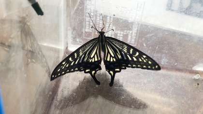 アゲハチョウが さなぎから出て せい虫になりました。