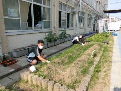 先生たちで 畑の 手入れをしました。
