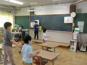 2日(火)から,AとBの2つのグループに分かれた分散登校・学習が始まりました。今年から,朝にランニングを始めています。自分のペースで,運動場を3周走ります。おはようタイムでは,日直の合図に合わせて,元気よく今日の日付や天気を言っています。また,ダンスDVDを見ながら,みんなで「エビカニクス」や「ラーメン体操」を踊っています。