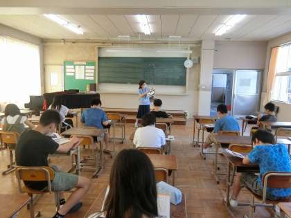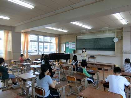 授業の最後では,5年生で学習した曲のイントロクイズをしました。「歌詞は分かる!」「曲名なんやったっけ?」と,盛り上がり楽しそうに学習していました。