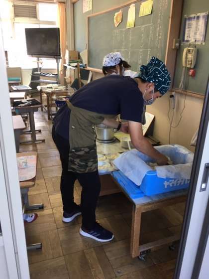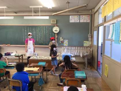 感染対策と同様にアルコール消毒、密接、密集を防ぐため教職員が配膳を行い、子どもたちが安全、安心して給食ができるように努めていきます。