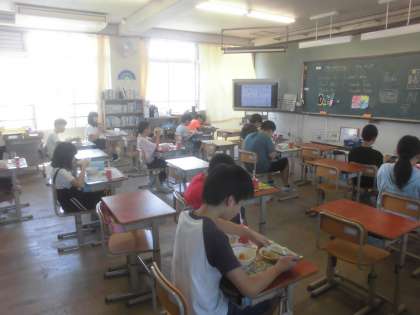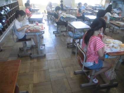 2年生以上の子どもたちにとっても,久しぶりの給食でした。座席や会話など,色々と制限のある給食時間でしたが,「やっぱり給食はおいしい!」と黙々と食事を進める子どもたちでした。