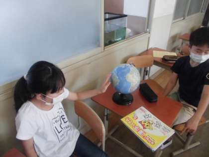 地球儀を使って学習をしました。