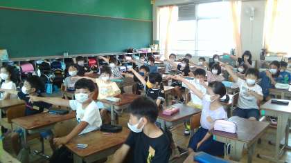 今までは半分だったけれど,ようやく全員で学習できます。「やっとや〜」という声も聞こえました。