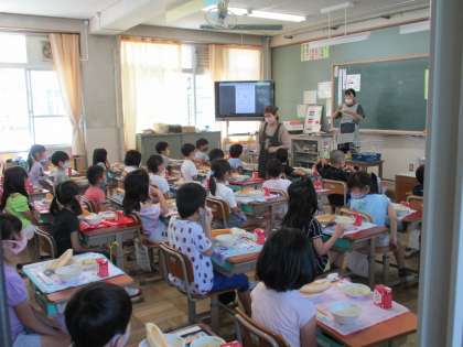 おはしやスプーン,手を使ってコッペパンに切り込みを入れ,ツナサンドの具を上手にはさんで食べていました。