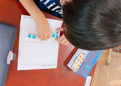 算数の学習では,数図ブロックを使って「7」がいくつといくつに分けられるかを考えました。