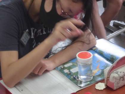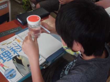 メダカの観察を行いました。大谷先生が1匹ずつビンに入れてくださったので,じっくりと観察してスケッチすることができました。どんな特徴があったかな?