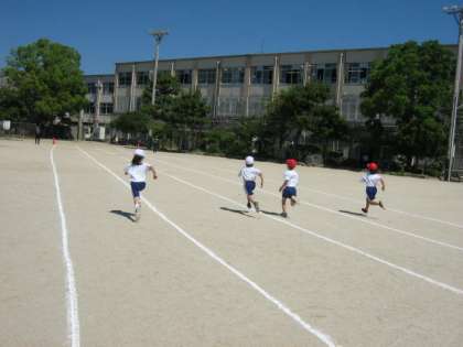 青空の下一生懸命走り切りました。「また走りたい!」「楽しかった。」と 走り終わった後も 笑顔いっぱいの子どもたちでした。