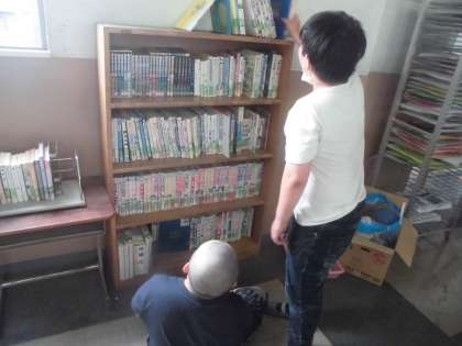 掃除時間だけでなく,休み時間にも本棚の本を整理してくれている人達がいました。