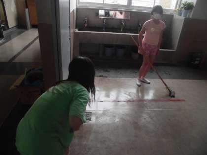 誰に言われるでもなく,汚れた廊下をキレイにしてくれている人がいました。