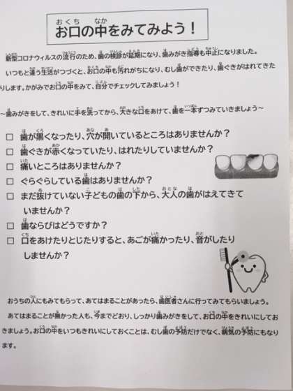 「お口の中をみてみよう!」を配布しています。