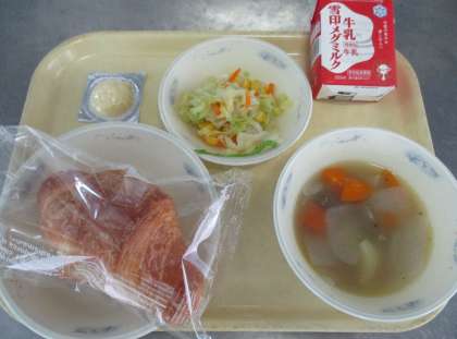 クロワッサン,アイルランド風ビーフシチュー,野菜のソテー,チーズ です。