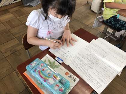 はじめのことば,つたえたいことなど手紙の組み立てに気を付けて,書きました。実際にお手紙を書くときに活用してほしいと思います。