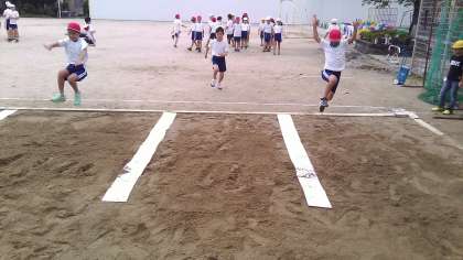 約2週間ぶりに幅跳びをしました。子どもたちはとても楽しそうな表情で学習に取り組んでいました。今日のめあては「しっかりふみきって跳ぶ」です。全員が思いっきりジャンプしてほしいなと思います。