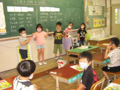 子ども達は,「たまご」「いちご」「めだまやき」「オムライス」など,その言葉に合ったリズムで楽しく手拍子を打っていました。