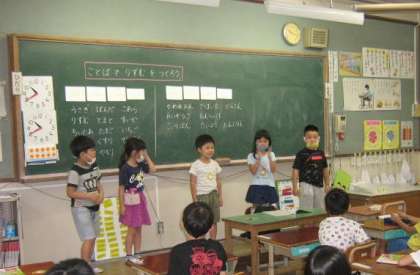 音楽の学習では,歌に合わせて手で拍子をとったり,季節に合う歌を歌ったりしています。