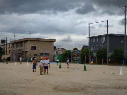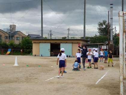 投げ方のアドバイスをし合って,記録更新に向けて頑張っていました。