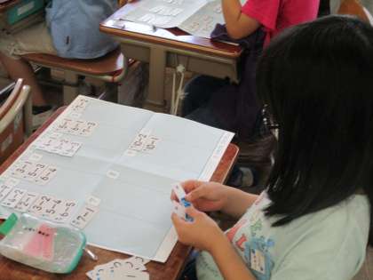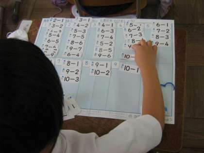 ひき算のカードを使って計算の練習をしています。