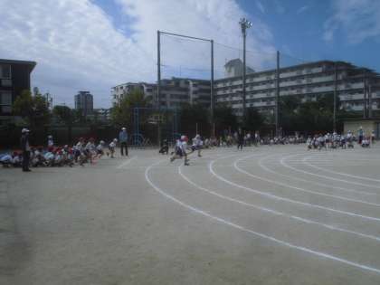広い運動場をゴールに向かって,一直線!!
