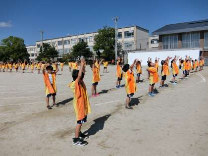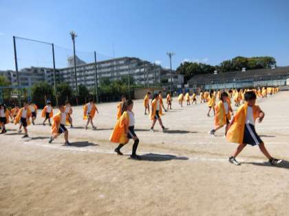 延期になった体育学習発表会に向けて,最後のリハーサルです。