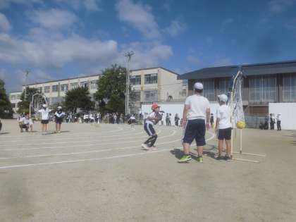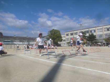 本日,晴天のもと,延期になっていた3年生・5年生の体育学習発表会が行われました。3年生のバラエティーでは,ハードル・ドリブルシュート・縄跳び・・・様々な運動をして,ゴールに向かって走りました。
