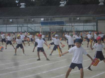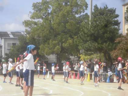 元気な5年生!!大きな動きと声,太鼓の音!!高学年らしい演技でした。運動場に沖縄の風が吹きました!!