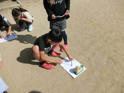 時間がたつと,かげの位置がどうなるのかを調べました。