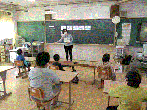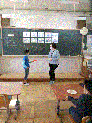 今日の英語活動は,ペンボス先生と英語で数を言う学習をしました。1〜10までの数を英語で言い,いくつありますかの聞き方「How many 〜?」を使って,ペンボス先生と数のやりとりをしました。先生の「Good!!」の声に,笑顔いっぱいの子どもたちでした。