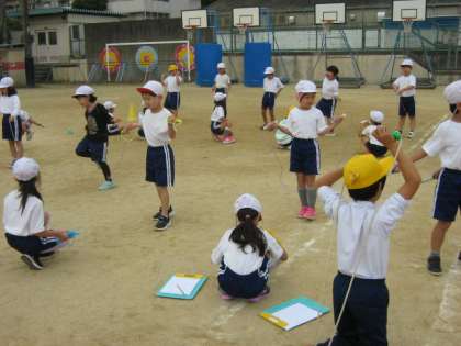 なわとびでは,いろいろな技と連続跳びに挑戦しています。