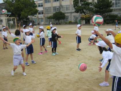 ボールあそびでは,1年生になって,初めてボールを扱っています。