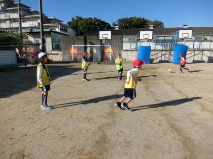 どんなパスがよいのか,てきをさけるためにどうしたらよいのか,チームで話し合って作戦をたてます。