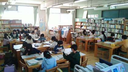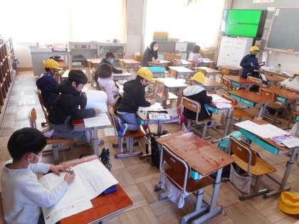 1年生は教室で,その他の学年は図書室で自分の級の練習をしました。