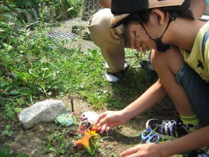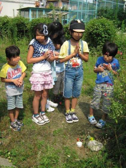 クルボーの冥福を祈り,子どもたちがお墓をつくってくれました。「ゆっくり