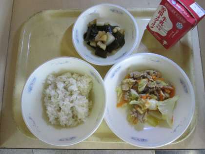 今日の「豚肉とキャベツのみそいため」は,今が旬(しゅん)の春キャベツをつかったこんだてでした。