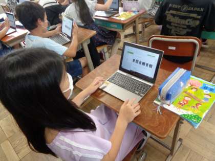 音楽の時間,バーチャルピアノを使いました。コロナの影響でリコーダーが使えない中,実際にタブレットを触ると音が出てくるので子ども達は大喜びでした。リズムを作ったり,ピアノを弾いたりして楽しく学習することができました。