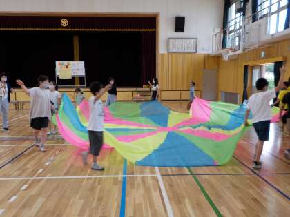 自己紹介を聞いたり,一緒にバルーンで遊んだりしました。