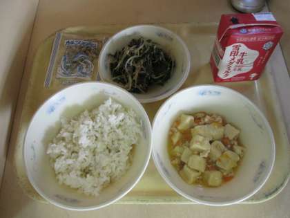 今日の「高野どうふのそぼろ煮」は,しょうがの香りが食欲をそそり,味がよくしみた高野どうふがたくさん入っていました。さらに,とろみもついていておいしかったですね。