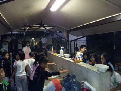 天気も回復した中で,みんなと協力し,おいしいカレーライスを作りました。格別の味です