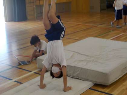 タブレット端末を使って動画を確認したり,場作りの工夫をしたりしながら意欲的に学習に取り組んでいます。