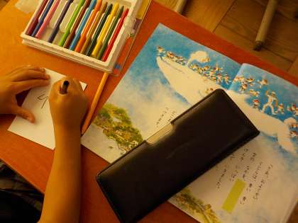 国語科『くじらぐも』の学習で,空を旅する子どもの会話を想像しました。