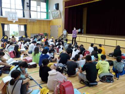 明日から修学旅行に行きます。前日に,注意することの最終確認を行いました。たくさんの楽しい思い出をつくってきます。