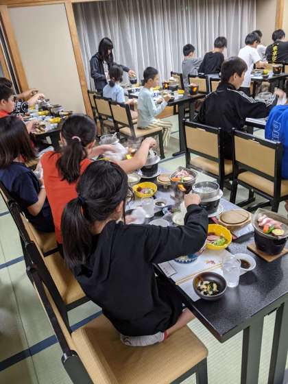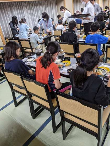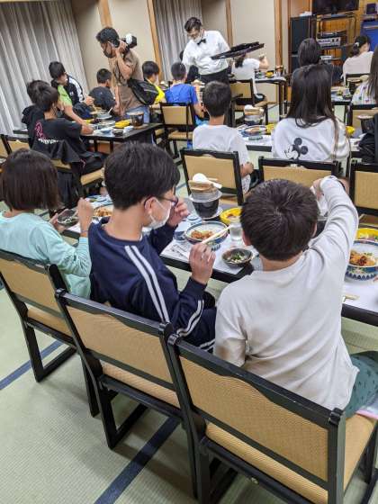 みんな前を向いての静かな夕食です。