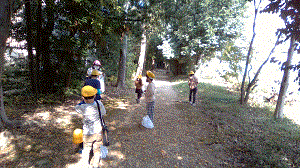 近くにある厳島神社へ,秋見つけに行きました。どんぐりや色づいた葉がたくさん落ちていて,子どもたちは袋いっぱいにどんぐりやどんぐりのぼうし,葉や枝を入れていました。鳥のさえずりや,葉をふみしめる音など,耳にも秋を感じることができました。