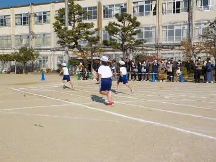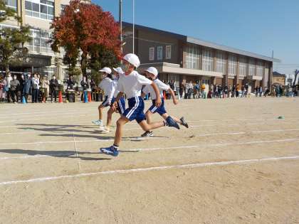 50m走です。みんな力いっぱい駆け抜けました。