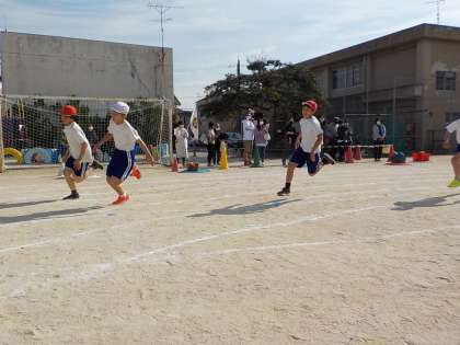 体育学習発表会のラストは100m走です。走る姿から力強さが感じられます。