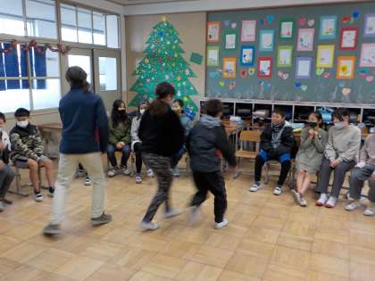 5年生はお別れの手紙を書き,イングリッシュフルーツバスケットなどをして一緒に遊びました。