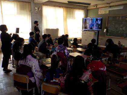 担任の先生から卒業生へ,思い出映像のプレゼント!!みんな見入っていました!!