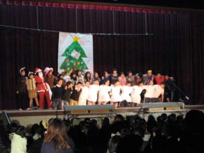 クリスマス会の準備をしている子どもたち・・・サンタを信じる子と信じない子が言い争います。その夜,子どもたちの目の前に,サンタとトナカイが・・・これは夢?それとも現実?6年2組の笑いと感動のファンタジー劇でした。