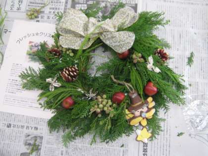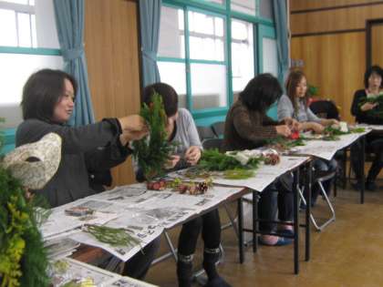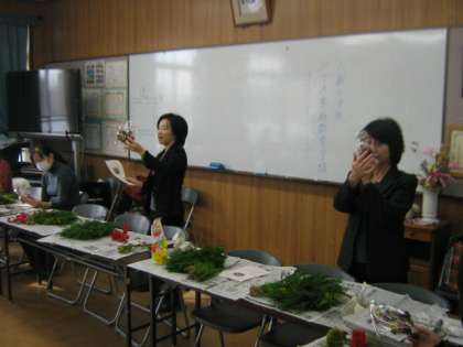 本日,家庭教育学級を行いました。もうすぐクリスマスシーズということで,クリスマスシーンを華やかに飾ってくれる,リースを生花を使って製作しました。みなさんとても立派なクリスマスリースを作成されました。