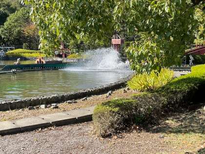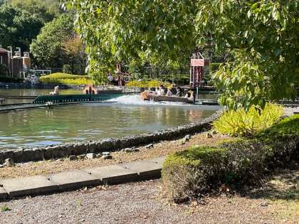 吉野川めぐりという名の急流滑りを楽しんでいます。すごい水しぶきが上がって、子ども達の大きな歓声が聞こえてきました。